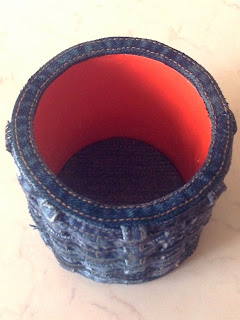 После всего этого "джинсового помешательства" у меня осталась куча замечательно-красивых швов. Поначалу я, конечно, пыталась, как положено, распарывать все швы на джинсах, но кто это делал, тот знает, насколько это адски-долгий труд (уж слишком их тщательно сшивают для тех, кто носит их не более полугода :-) ), поэтому я их просто срезала, а руки не поднялись выбросить. В результате родился такой "брутальный стаканчик стаканище" для карандашей.